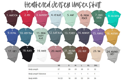 Fit: Unisex Bella Canvas (All colors are Heathered except Black, White, Rust and Tan)